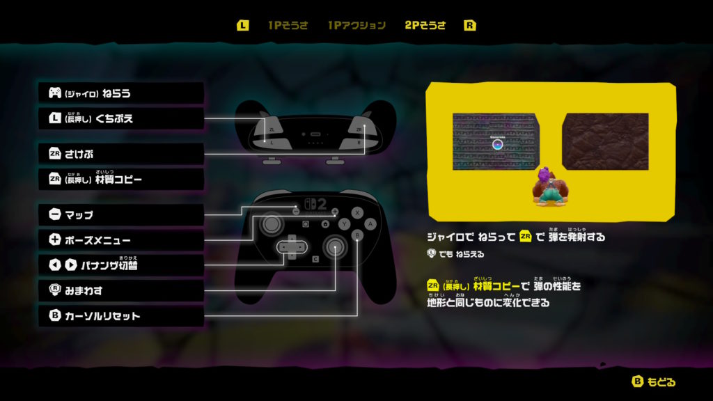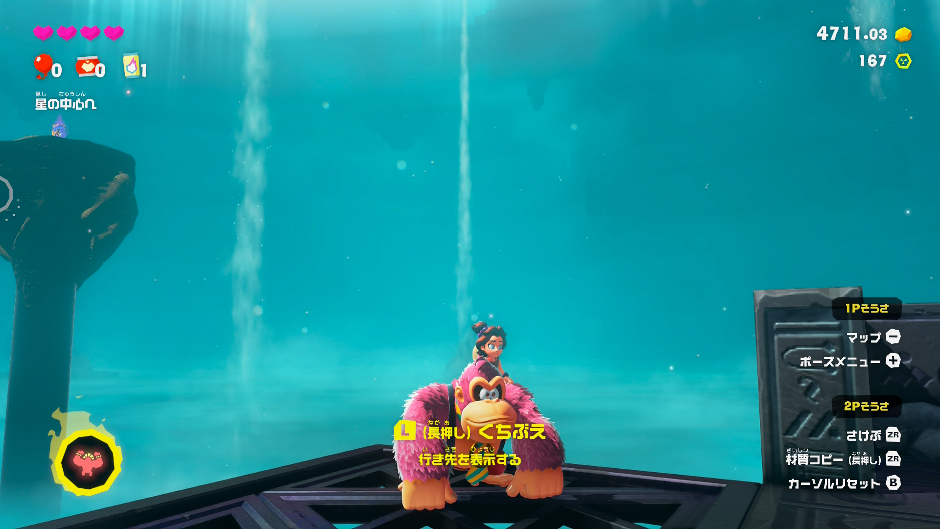 2Pが操作する謎の少女はつねにドンキーコングの肩に乗っており、自由に移動することはできませんが、壁やオブジェクト壊したり、敵に攻撃することでドンキーコングをサポートすることができます。攻撃の属性を地形からコピーすることができ、石や土、コンクリートなどに変化させながら戦うことが可能で、その破壊力はなかなかのもの。ボス戦ではかなり火力貢献することができました。自由に移動しながら2人で探索するような楽しみ方はできませんが、ドンキーコングの操作を交代しながらプレイするなど工夫することで、ある程度の協力プレイも楽しめると思います。