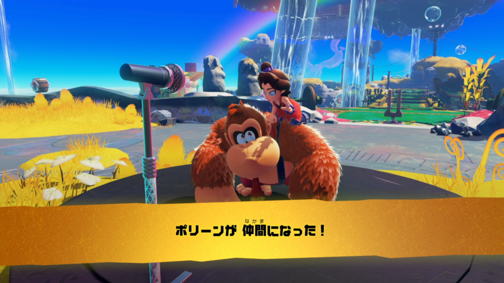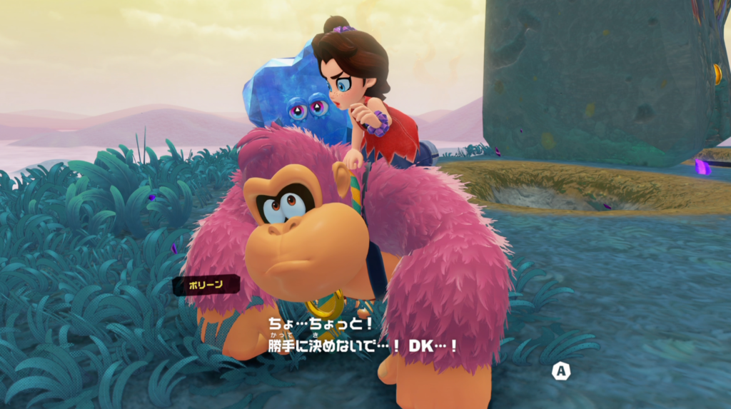 突如現れた隕石のようなものの力で地中深くまで沈んでしまった「インゴス島」から、地上に帰還するため冒険する…といったストーリーになっています。道中では、暗躍する謎の組織・ヴォイドカンパニーや謎の少女・ポリーンとの出会いがあり、どうやら少女はヴォイドカンパニーに良いように利用されていた模様…。ですが、ドンキーコングとの出会いを経てポリーンが少しずつ心を開いていく様子が各エリアの別荘での会話で確認でき、はじめは消極的で控えめだった少女がドンキーコングとの冒険を通じて成長していく姿がとても感動的でした。さらに謎の少女のセリフが日本語フルボイスに対応しているため、続きが気になる展開によりいっそう没入しながら楽しめました。