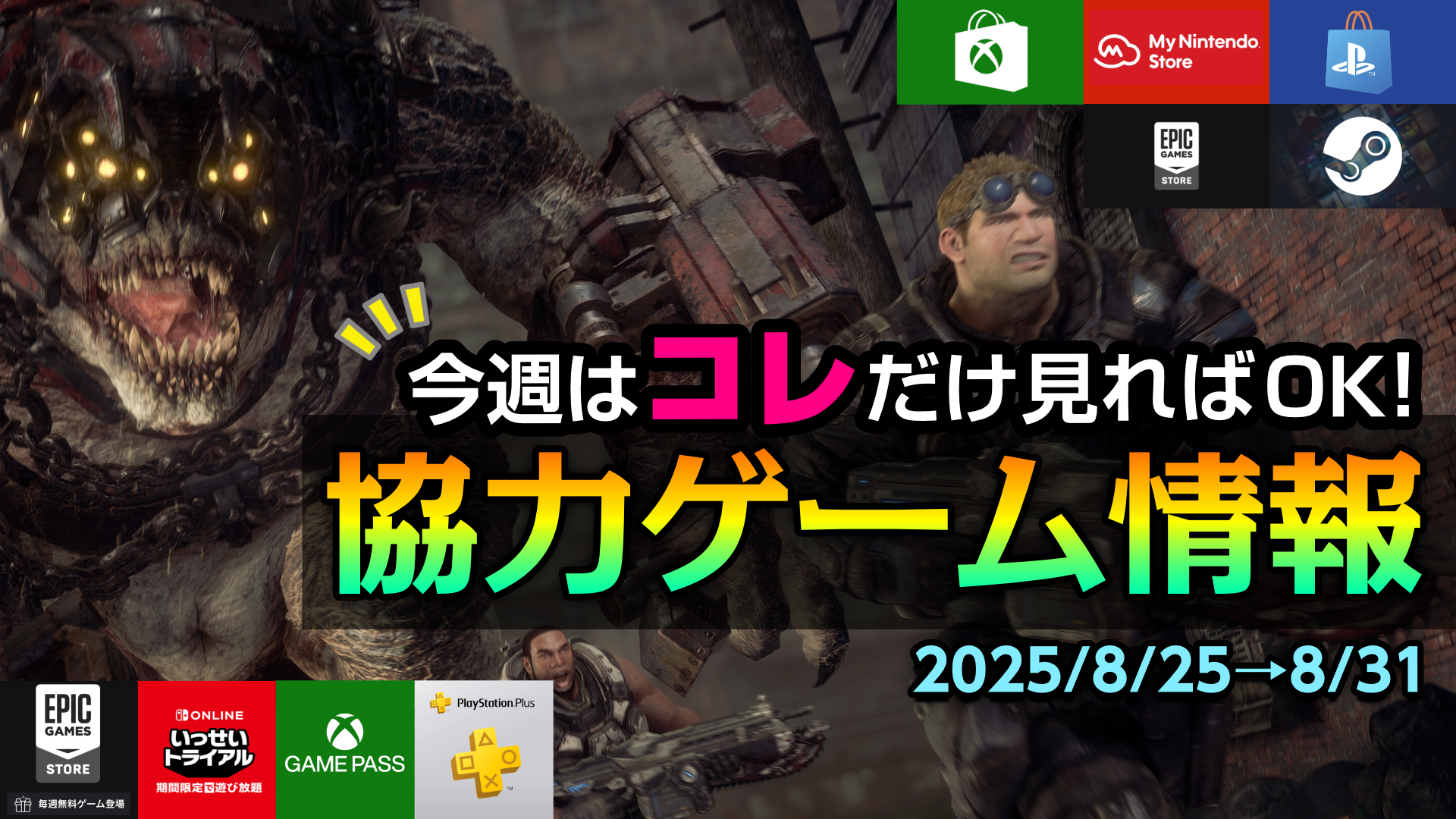 SteamやEpic Gamesの無料配布対象ソフト、PS Plusのフリープレイ情報、Xbox Game PassやPS Plusゲームカタログ、任天堂いっせいトライアルなどに対応する協力ゲームの情報を紹介!