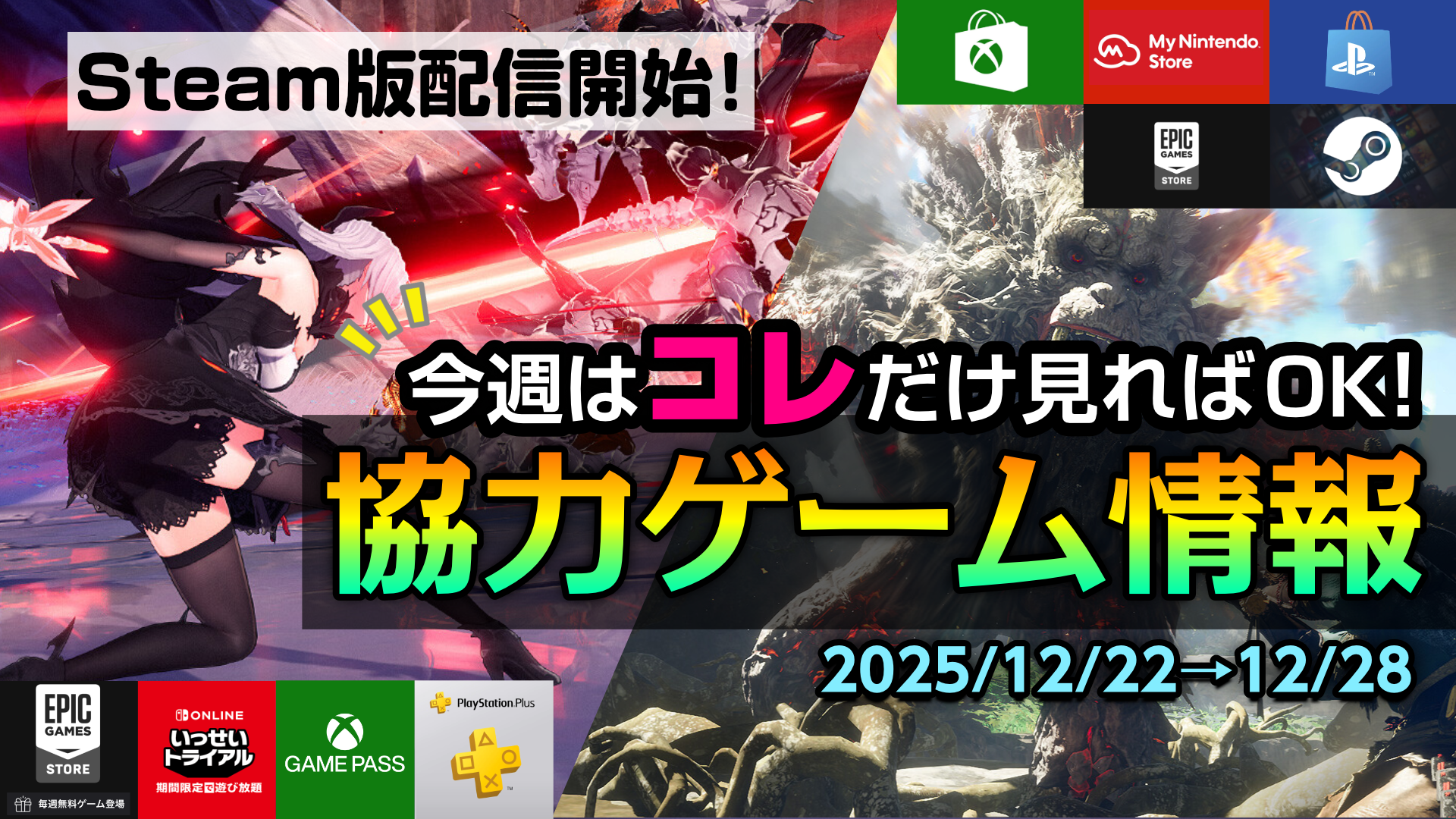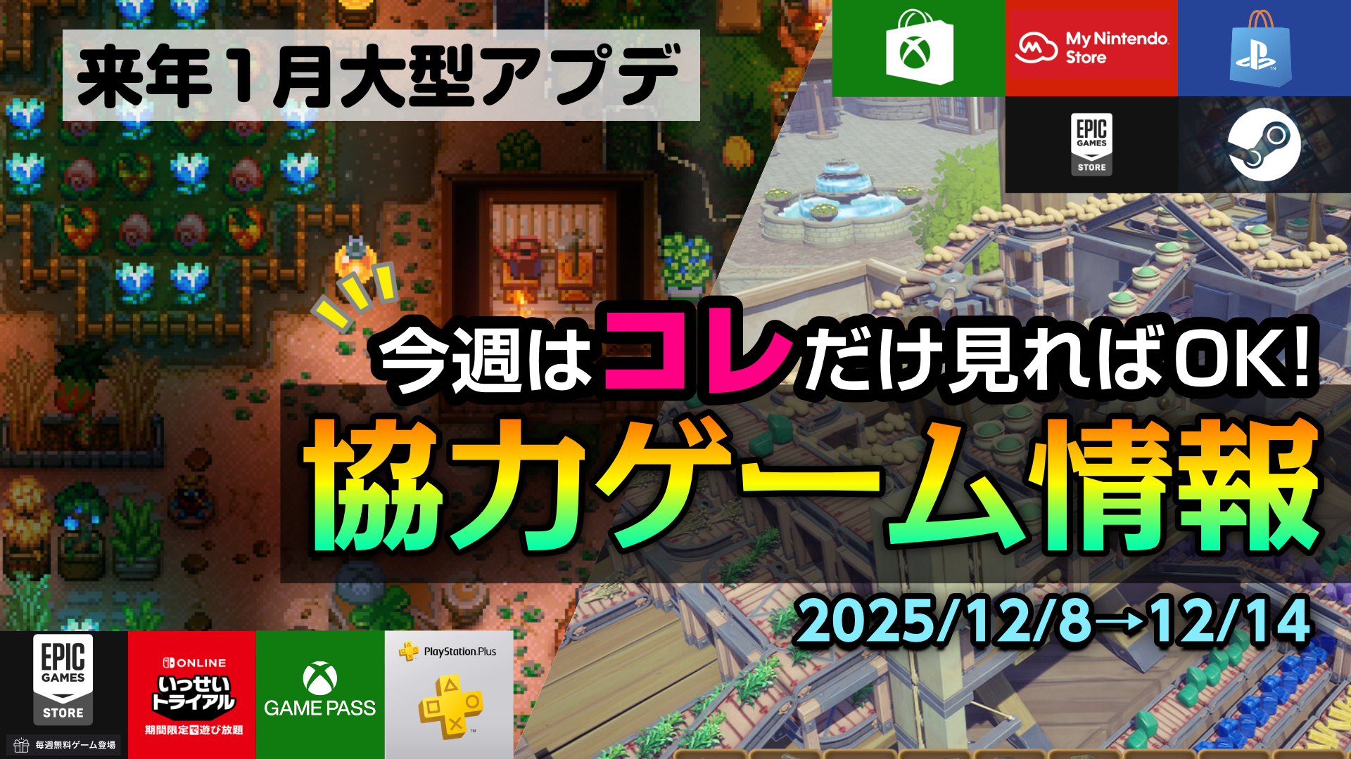 HOME > 協力ゲーム情報 > 協力ゲーム情報 YouTubeでライブ配信を行った早期版やアーリーアクセス版のマルチプレイ対応ゲームのプレイレポートや、協力プレイ対応ゲームに関する最新情報をまとめています。